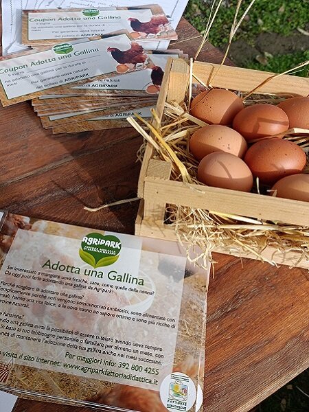 Quello che per noi adulti può sembrare ormai un lontano ricordo (io vivevo in campagna e avevamo una gallina, perciò mangiare uova fresche era per me una cosa normale), i bambini di oggi a volte neanche sanno da dove viene l’uovo che stanno mangiando. Ad Agripark, è possibile adottare una gallina, che vive e cresce in maniera del tutto naturale nella fattoria, così da poter avere le proprie uova fresche e venire a ritirarle in fattoria. Vi verrà consegnato un coupon con delle caselline, in cui verranno segnate tutte le volte che verrete a ritirare le vostre uova fresche.