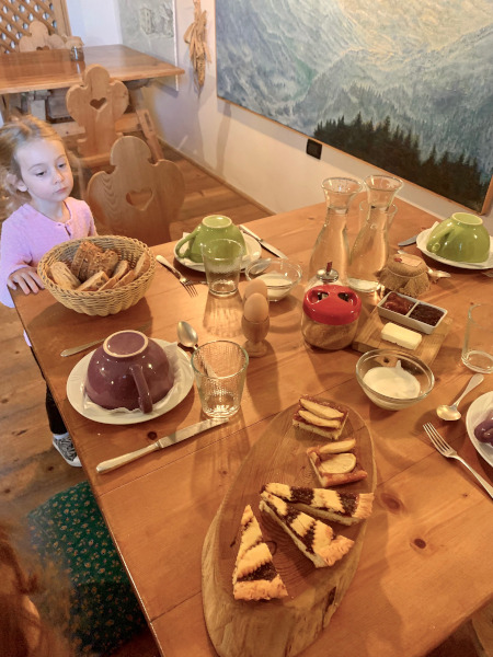 Anche la colazione è spaziale, davvero ricca con cibi semplici che danno la carica per cominciare una nuova giornata. Abbiamo trovato la tavola già apparecchiata con pane, burro fresco, marmellata fatta da Nicoletta, uova sode e omelette. Ricordava molto le tipiche colazioni dei nonni! Mia è rimasta a bocca aperta da tanta scelta e bontà.