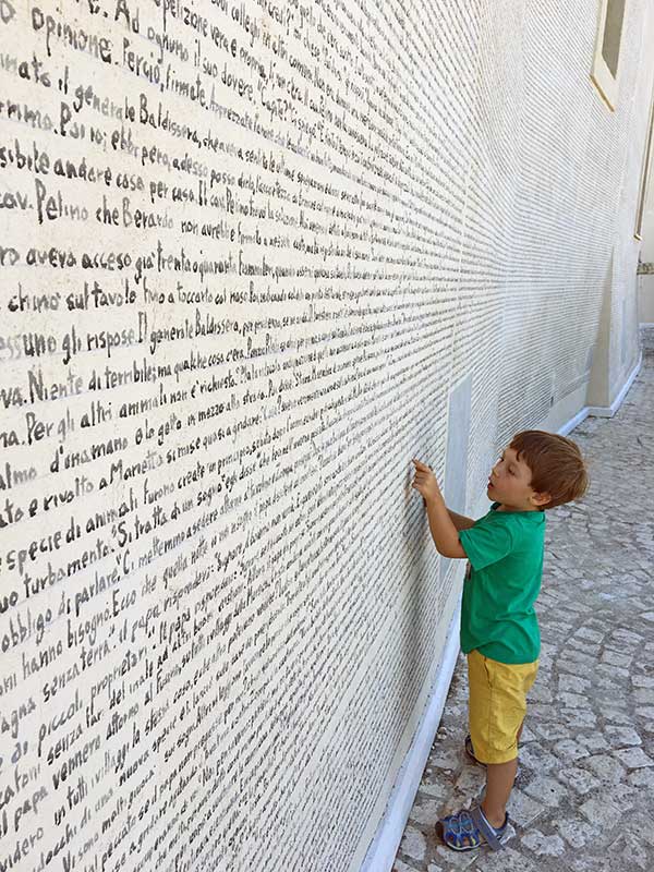 Temevamo quindi che i murales artistici di Aielli non sarebbero stati altrettanto apprezzati da Tommaso, ma ci sbagliavamo. Con il tipico linguaggio immediato della street art, unita a colori molto brillanti e a una sorta di caccia al tesoro con tanto di mappa in giro per il borgo, ci siamo divertiti moltissimo tutti e tre.