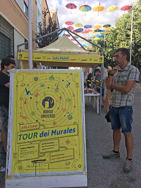 Negli ultimi decenni anche Aielli, come altri paesini, aveva visto una diminuzione della popolazione, ma gli abitanti non si sono dati per vinti e nel 2017 hanno realizzato un festival artistico che in pochissimi anni ha attirato su di sè l’attenzione internazionale: Borgo Universo.