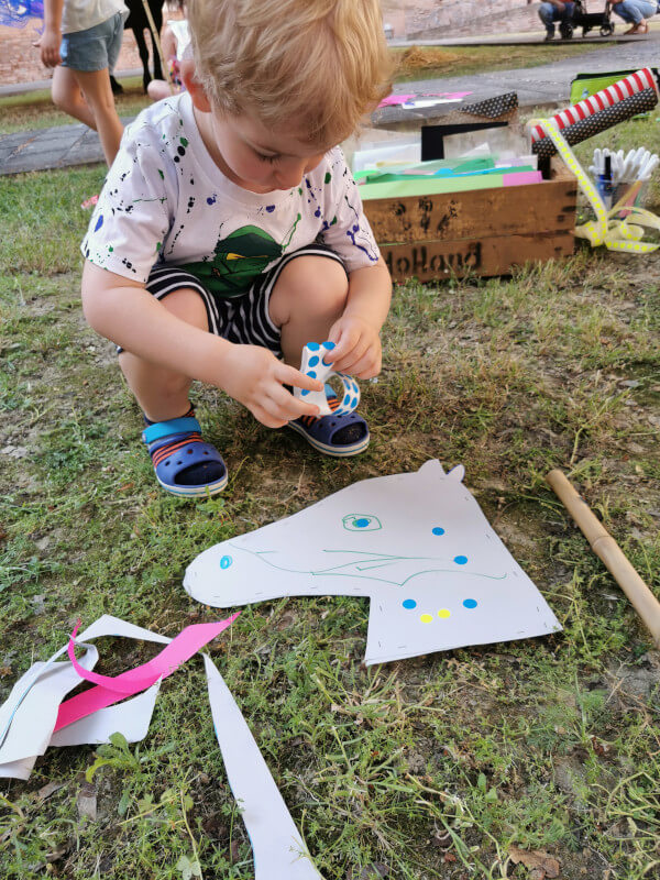 Nel pomeriggio invece il chiostro ha ospitato un divertente laboratorio per bambini, guidato da Margherita Tedaldi e aperto a tutti, in cui hanno realizzato il loro cavallino con carta, forbici e decorazioni varie. E al termine hanno dato tutti insieme da mangiare ai due cavalli che nel frattempo si godevano l’ombra e il fresco.