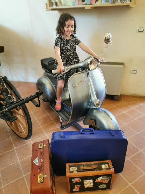 E poi ogni pezzo d’arredo che trovi all’interno dell’hotel ha una storia, che Fulvia e Paolo non vedono l’ora di raccontarti. Le mascotte dell’Antico Convento sono una bicicletta, una carrozza (ultima arrivata), una vespa e una Cinquecento su cui si può salire per immortalare foto ricordo del soggiorno (tranne sulla carrozza, mi raccomando!).