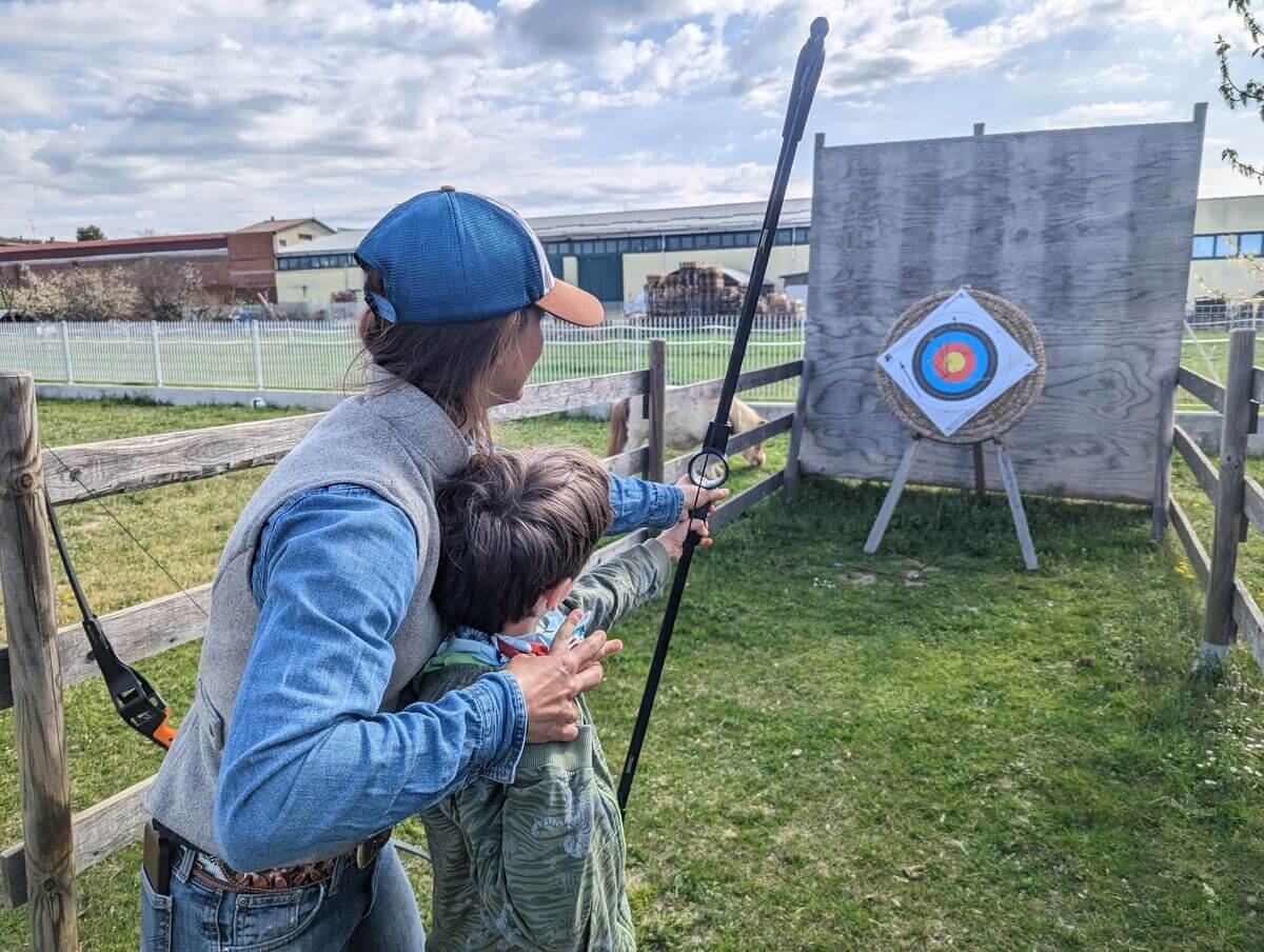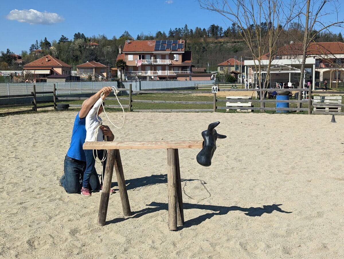 Poi, dopo una pausa che definirei solo genitoriale perché i bambini hanno continuato a correre e giocare con i cagnolini, le attività sono riprese e c’è chi ha potuto sperimentare il battesimo della sella, facendo un giro a cavallo e chi si è cimentato nel tiro con il lazo tra le risate generali.