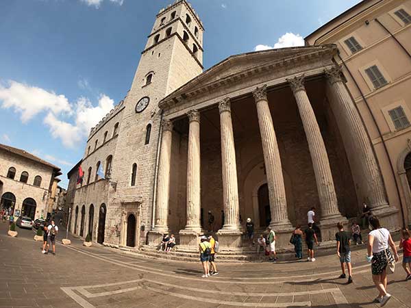 Dopo la basilica visitiamo la piazza col Palazzo dei Priori, dimora dei signori di Assisi e il tempio di Minerva che se ne sta lì dal 30 a.c., prima luogo di culto pagano e poi consacrato. Tutta la città è un incanto di vicoli fioriti, pietra e passaggi da una finestra all’altra.