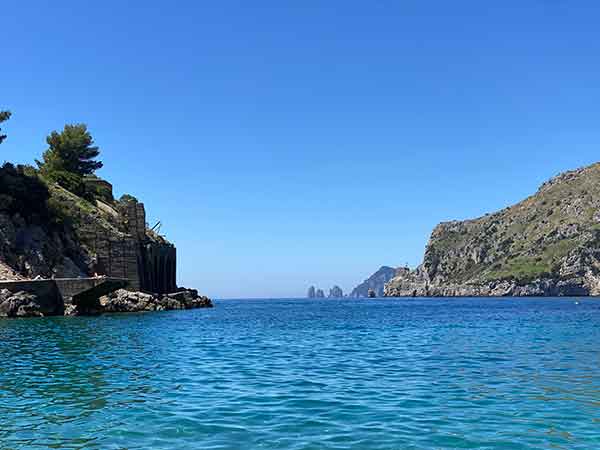 Alla Baia di Ieranto si può arrivare in barca solo con la Cooperativa Sant’Andrea, l’unica autorizzata ad entrare nell’area protetta di Punta Campanella. Del resto, questa è l’acqua più pulita di tutta la Costiera, interdetta ai veicoli a motore.