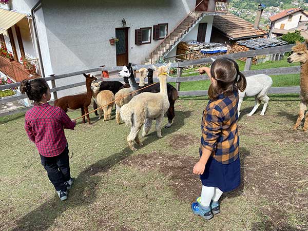 Non ci sono giochi per bambini, ma c’è un bel giardino dove possono giocare e poi gli animali della fattoria e gli alpaca da accarezzare a poca distanza.
