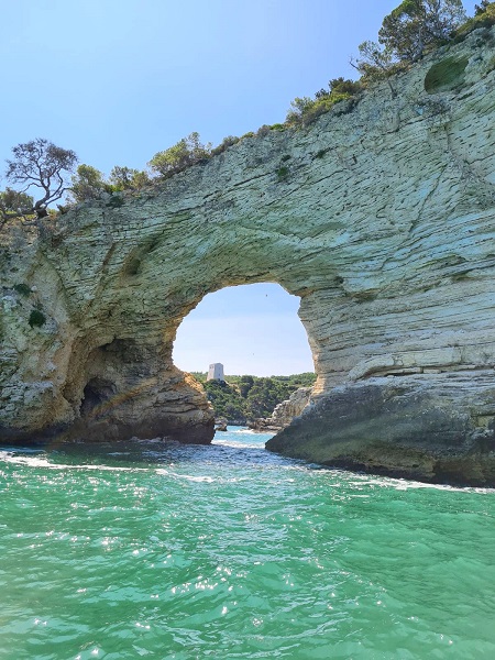 Risaliti a bordo la navigazione è proseguita raggiungendo spiagge bellissime come la caletta di Portogreco, l’incredibile spiaggia di Vignanotica (la nostra preferita) incastonata tra le falesie bianchissime, quella di Pugnochiuso, fino ad arrivare alla più famosa: la Baia delle Zagare inconfondibile grazie ai suoi faraglioni, simbolo indiscusso del Gargano.