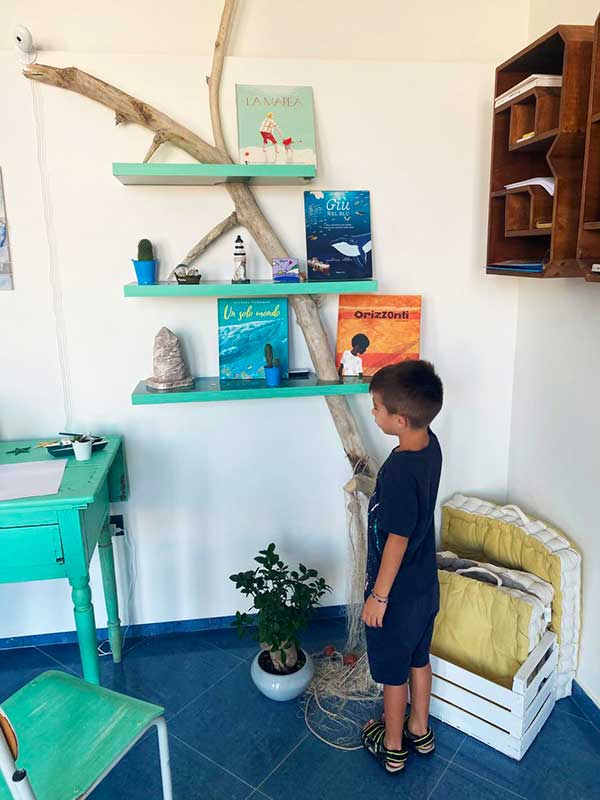 Ma Betta non è solo in mare! Sul molo di Vieste è presente quella che Grazia ama chiamare la “postazione terrestre”, non un semplice ufficio, ma un vero e proprio punto di partenza per conoscere Betta e tutto il progetto.