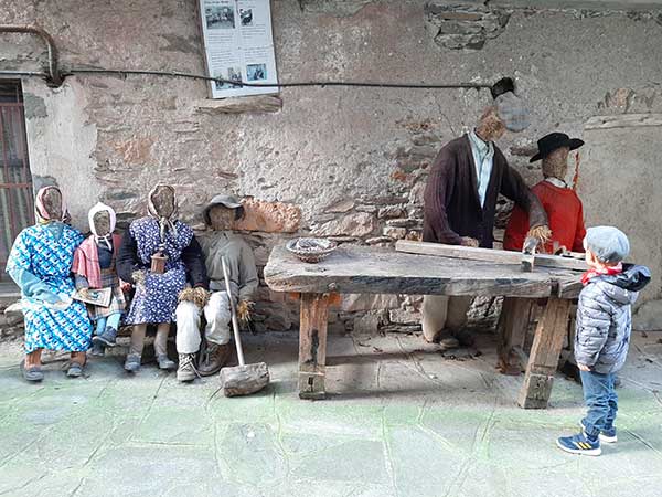 In questo paesino disabitato, oggi museo a cielo aperto, dalle case, dalle stalle, dalle finestre, spuntano fantocci ad altezza naturale, costruiti con paglia ed altri materiali di recupero. Ma chiamarli fantocci diventa riduttivo se si pensa a ciò che hanno saputo fare.