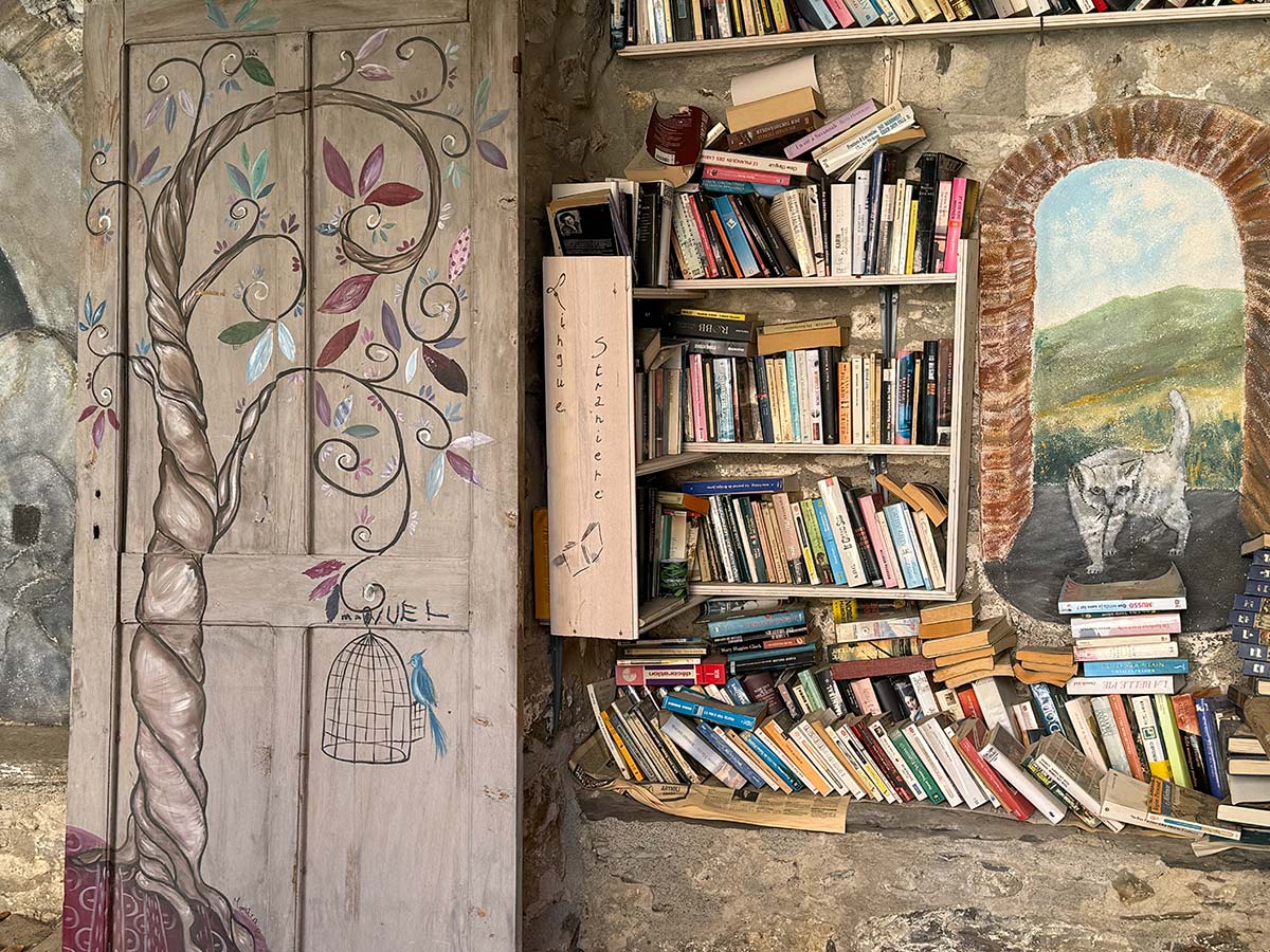 Ma forse l’angolo che ci è piaciuto di più è stata la piccola libreria-biblioteca dello scambio sotto un arco.