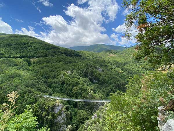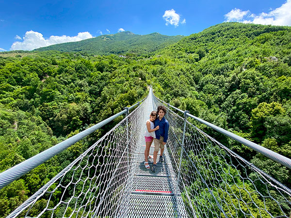 In Cilento si può anche provare l’emozione di volare sul ponte sospeso di Laviano (adattissimo ai bambini).