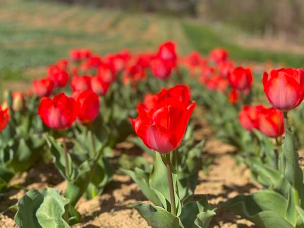 Novità 2025: Oltre al solito campo quest’anno troverete un nuovo campo, direttamente dopo l’ingresso. Vicino troverete i cassoni con giacinti, narcisi e muscari e uno con i tulipani speciali che abbiamo scelto per i più appassionati.