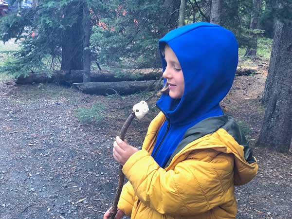 Quando siamo entrati nel parco non abbiamo chiesto il permesso per accendere il fuoco, ma i bambini fanno subito amicizia con il nostro vicino di piazzola, un francese che sta facendo da tre mesi il giro del Canada in moto, e chiedono di poter riscaldare i marshmallow sul suo fuoco.