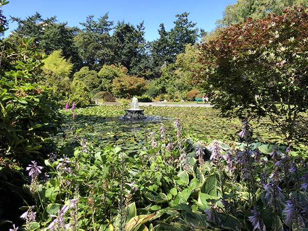 Per pranzo abbiamo comprato, panini, formaggio e biscotti e siamo andati a Beacon Hill Park, un parco urbano sulla collinetta che domina Victoria. Abbiamo pranzato tra oche, papere e scoiattoli in riva al lago con la fontana. Avete mai visto una fontana in un lago? Idea bizzarra, ma l’effetto è super romantico.