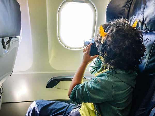 Sul primo aereo ho solo un desiderio : “Voglio dormire”. E voglio far dormire i bambini per cercare di abituarli al fuso orario.