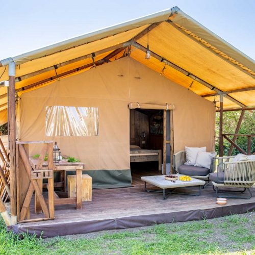 Qui potrete scegliere tra due tipologie di “tende” entrambe molto amate dai bambini: le Tende Safari che sono grandi 35 mq e che richiamano in tutto per tutto le atmosfere dei safari in Kenya e le tende Sweet Dreams, una via di mezzo tra una tenda classica e una casa sull’albero. Le aperture sono apribili come nelle classiche tende, ma la struttura in legno su due piani ricorda una casa sull’albero, sogno di tutti i bambini.