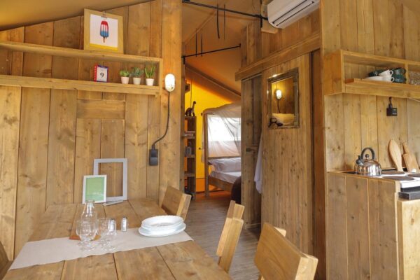 Sia le Tende safari che le tende Sweet Dreams hanno bagno interno e angolo cottura, per una vacanza nella natura all’insegna della comodità ma senza rinunciare allo spirito di avventura che solo una tenda sa regalare.