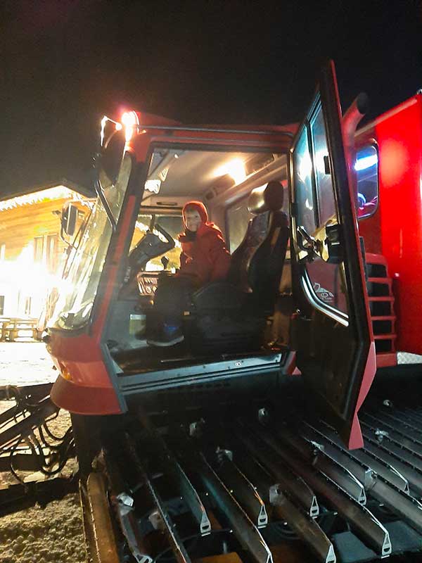 Pian Del Sole, è un locale storico che è stato completamente ristrutturato nel 2019. Da semplice punto di ristoro, quale lo ricordavo, ha saputo trasformarsi in un bel luogo caldo e accogliente, totalmente in legno e con una splendida terrazza vista montagne. Nell’entrare, dopo aver visto partire altri gruppi in sella alle motoslitte e un giro di prova di Arturo sul gatto delle nevi, siamo stati accolti da un bel tepore e un ottimo profumo, preludio della cena luculliana che abbiamo consumato.