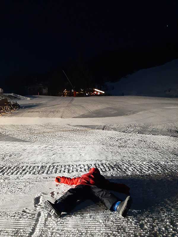 La discesa è fissata per le 22, resta quindi il tempo di ammirare il cielo a pancia in su (copritevi bene!) cercando di riconoscere le stelle e di ascoltare nel silenzio il verso degli animali che popolano il bosco per poi dirigersi alle seggiovia e riprendere la via di ritorno e lasciarsi sorprendere, ancora una volta, dal paesaggio invernale, sospesi nell’aria mentre le luci della civiltà si avvicinano.