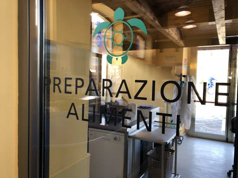 I bambini possono vedere anche i laboratori con i ricercatori al lavoro e le cucine dove preparano i pasti per le tartarughe.
