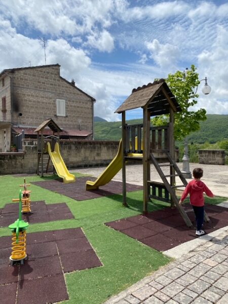 Conca della Campania è un piccolo borgo arroccato su uno sperone roccioso, nella provincia di Caserta, dove una volta sorgeva il vulcano, ormai spento, di Roccamonfina. Siamo all’interno del Parco Regionale Roccamonfina, una zona particolarmente ricca di boschi, sorgenti naturali e castagneti. Roccamonfina è infatti particolarmente conosciuta per la varietà di castagne che si raccolgono in questa zona. Il borgo conta poco più di 1200 anime. Una volta arrivati, ci si parcheggia nei pressi del castello in piazza Umberto I. Alle spalle del castello, c’è anche un piccolo parco giochi per bambini.