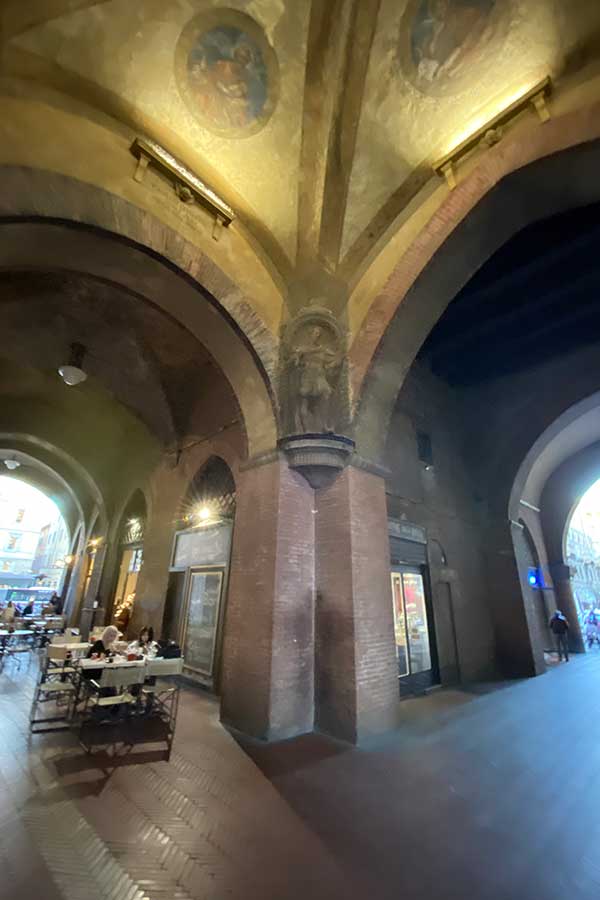 Uno dei grandi vantaggi di Bologna sono i suoi portici, che permettono di continuare a esplorare la città anche con il brutto tempo.