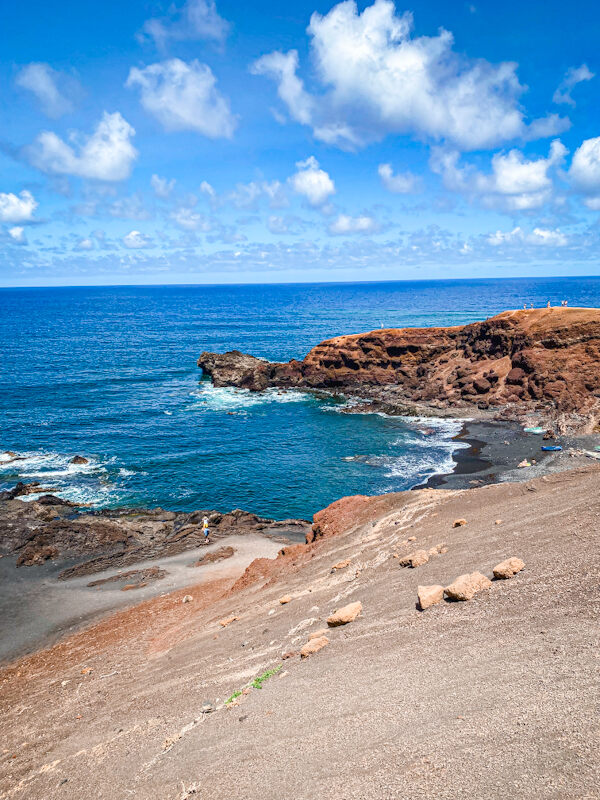 Già il solo panorama che si vede lungo il sentiero è da mozzare il fiato. Una spiaggia nera, Playa el Golfo, le rocce rosse e il mare blu…creano uno scenario da cartolina.