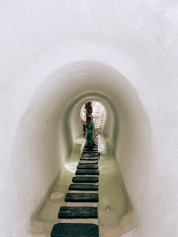 Camere comunicanti, corridoi nascosti che dovrete attraversare saltellando su delle pedane di legno in mezzo all’acqua (indovinate quante volte Manuel ha fatto su e giù per questo corridoio??), scalinate esterne che sembrano essere state scolpite direttamente nella roccia e infine una veduta panoramica pazzesca.