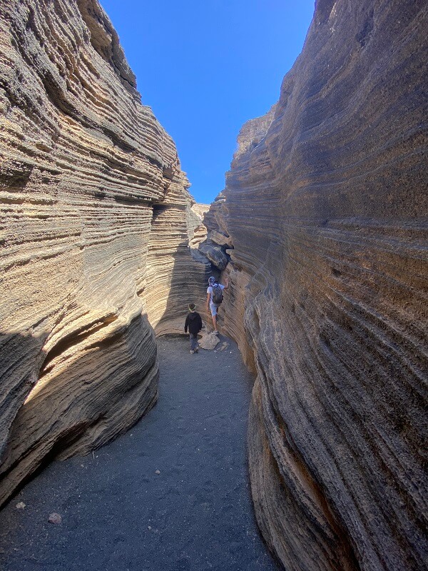 Attraversate la strada e salite fino ad arrivare ad una parete che sembra piatta. Ci sono diversi ingressi, imboccatene uno (noi li abbiamo provati tutti, Manuel non voleva più uscirne!) e vi troverete catapultati in un vero e proprio canyon scavato dal vento. Una sorta di labirinto da cui uscire, arrampicarsi, riscendere, con livelli di pendenza a volte davvero difficili, soprattutto perché a terra è tutta sabbia mista a pietre in cui i vostri piedi affonderanno, rendendovi la camminata un pò faticosa.