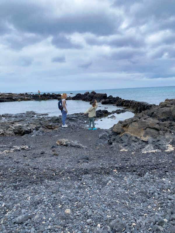Il cielo era molto nuvoloso ma il paesaggio che ci siamo trovati di fronte ci ha davvero stupito. La scogliera di Famara alle spalle, l’oceano di fronte e una lunga spiaggia di sabbia dorata dove io e Manuel abbiamo corso a perdifiato, bagnandoci i piedi nell’acqua gelida. Famara è un piccolo villaggio dove la vita scorre lenta. Qui incontrerete giovani surfisti e tanti camper e minivan che si appostano sulla lunga distesa di dune che si affaccia sulla spiaggia. Fermatevi per uno spuntino e una birra fresca a Centro socio cultural, dove per pochi euro potete gustare delle ottime tapas mentre i bambini giocano al parco giochi alle spalle del bar.