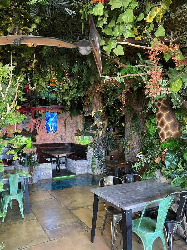 Ed eccoci a Puerto del Carmen, località tipicamente turistica dove si concentrano gran parte dei residence, alberghi, locali, centri commerciali dell’isola. Siamo andati al Biosfera Plaza Shopping Centre, un centro commerciale con una terrazza, ed è proprio qui che c’è un piccolo ma carino minigolf “Jurassic Kingdom”: una partita costa 7,50€, le buche sono 10 e i dinosauri ringhiano, si muovono, c’è anche un vulcano che sbuffa fumo…insomma per Manuel il paradiso! Accanto al minigolf c’è un locale a tema jungle, Lost World Restaurant, molto carino per i bambini, dove mangiare un panino tra gorilla in gabbia e pterodattili appesi al soffitto.