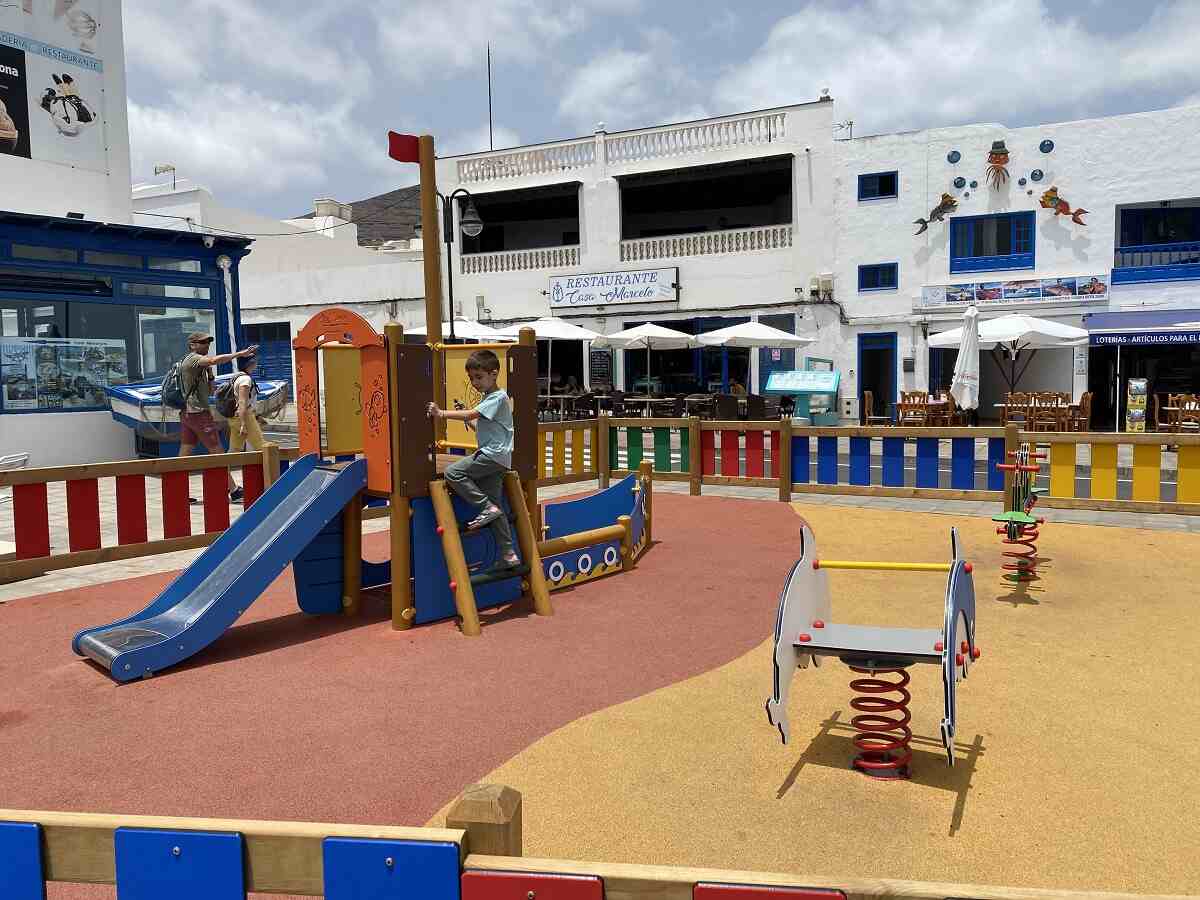 Il paesino si attraversa a piedi, in pochi minuti e alla fine, immancabile come in ogni città o borgo di Lanzarote che abbiamo visitato…un parco giochi, per la gioia di Manuel, che ormai ha come unico obiettivo, al suo rientro, quello di creare una mappa dei parchi giochi a Lanzarote. Qui non avete nulla da visitare, dovete solo passeggiare e fermarvi sulla spiaggia di sassi Playa el Paso, proprio di fronte al parchetto giochi, e poi andare a mangiare al ristorantino Costa Azul affacciato sull’oceano , dove mangerete dell’ottimo pescato del giorno.
