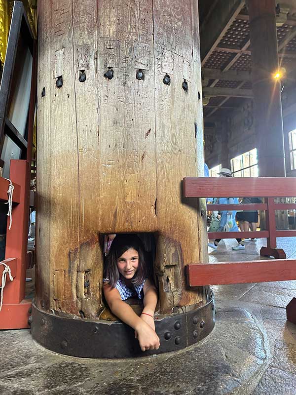 Sul retro del Daibutsu – Den è situato un pilastro in legno con un buco al centro, grande esattamente quanto la narice del Buddha : si dice che le persone che riescono ad attraversarlo ricevano una sorta di “illuminazione”. Ovviamente i bambini ce l’hanno fatta con grande soddisfazione.
