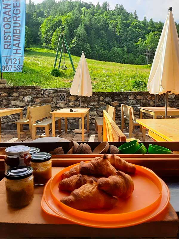 Noi siamo stati ospiti in questo posto tappa a conduzione “amicale” e ci siamo sentiti più che a casa, le camere semplici e pulitissime (otto stanze tutte con bagno e televisore), la cucina verace e abbondante (agnolotti, gnocchi, arrosti, ottimi dolci), una splendida vista sulle montagne e a disposizione dei più piccoli alcuni giochi esterni e da tavolo. Presso la pensione è possibile noleggiare la bici e stipulare convenzioni con la seggiovia per lo ski-pass e il bike-pass giornaliero nel periodo invernale.
