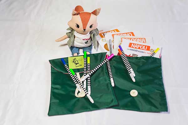 Le custodie sono facilissime da usare, si infila un libro, ma anche due tascabili e si chiede, ma nella nostra immaginazione diventano vere e proprie “ tasche magiche da viaggio”. Che significa?  Non sono sacche in cui mettere dentro di tutto, ma senza dubbio oltre a un libro potete mettere: colori, qualche giochino e soprattutto biglietti, cartoline e piccoli ricordi di viaggio.
