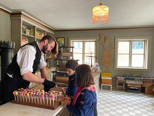 A noi è piaciuta molto anche la parte con la ricostruzione dei sobborghi di Oslo di fine ottocento, con le case degli operai e i negozi di tabacchi, dove ci siamo fermati a comprare delle caramelle.