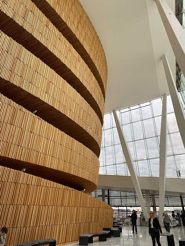 L’ingresso è gratuito. L’Opera di Oslo è stata progettata dagi architetti Snøhetta, che hanno lavorato insieme a vari artisti.