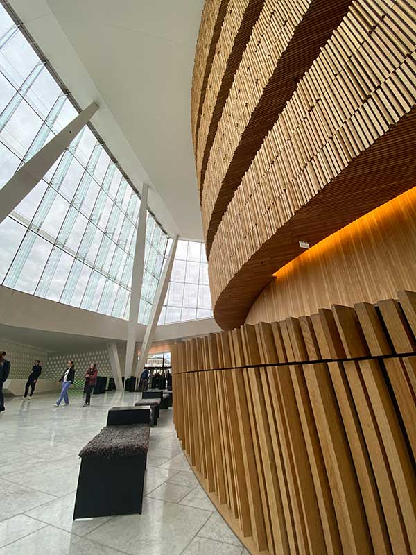 E così abbiamo fatto. Ci siamo diretti verso il porto: pima tappa Hopera Huase, la sede della Den Norske Opera & Ballett è il teatro nazionale d’opera della Norvegia.