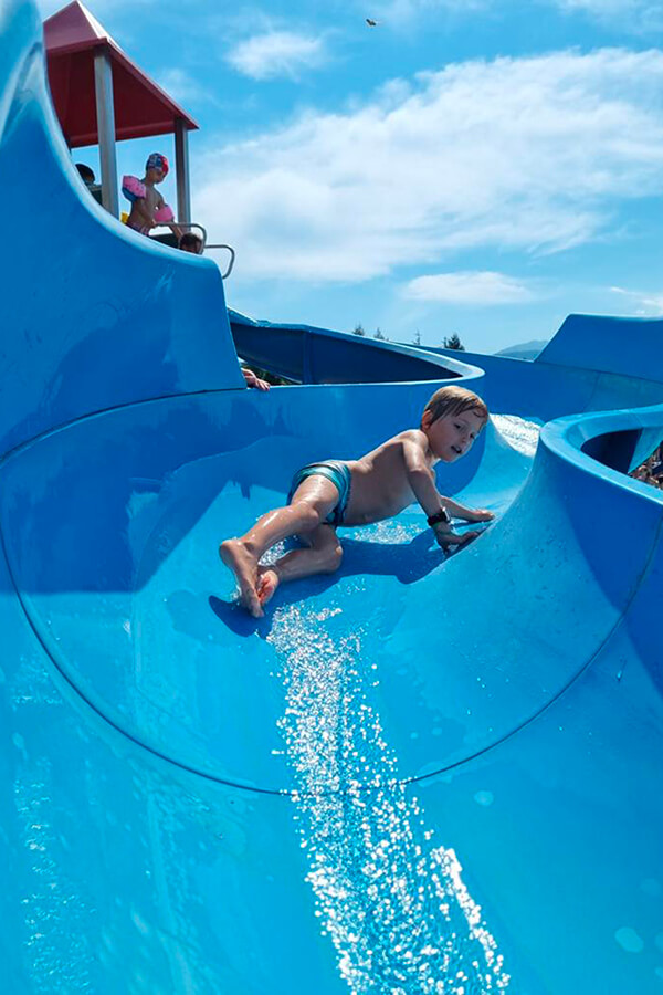 Lo scivolo Foam a 4 piste da 30m vi permette di sfidare gli amici in una gara di velocità, mettendo alla prova il vostro coraggio e scegliendo il modo più stravagante e divertente per lanciarsi dalla ripida discesa. L’idroscivolo giallo da 45m vi concede di scegliere con i vostri amici la velocità di discesa che più preferite attraverso parecchie posizioni. Mentre chi è alla ricerca dell’adrenalina pura deve assolutamente provare lo scivolo idrotubo blu da 25m caratterizzato da un vortice buio di velocità.