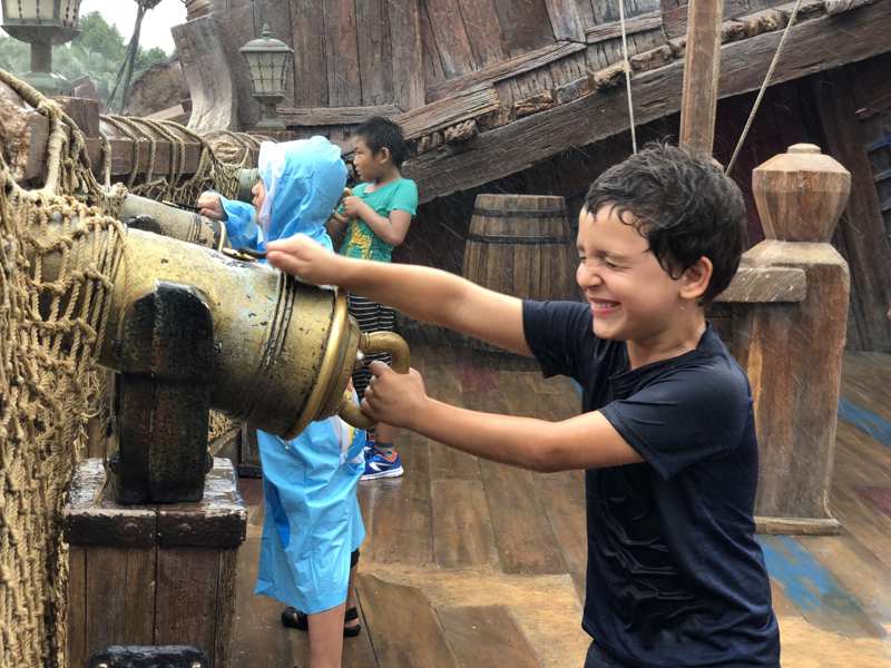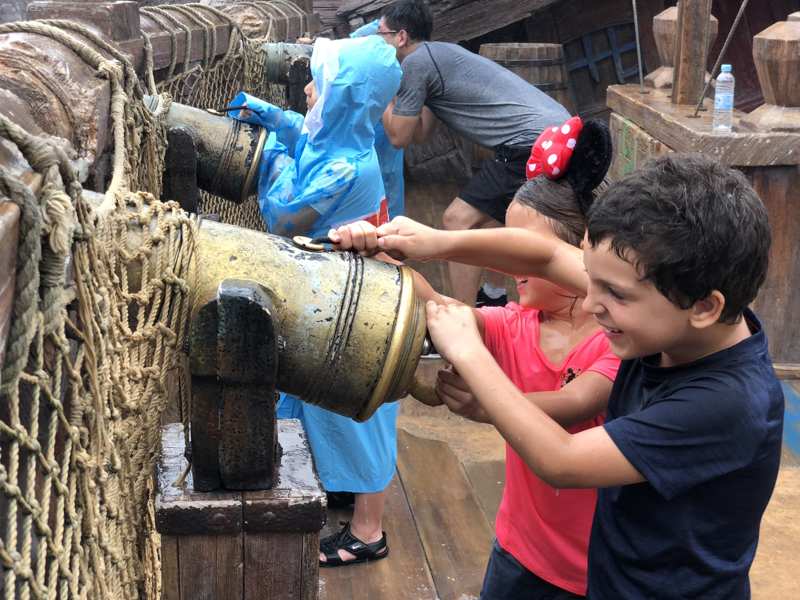 Nell’area dei pirati poi c’è una vasta zona in cui i bambini si possono sfidare a battaglie d’acqua. Peccato che manchino degli asciugatori (come abbiamo visto nel parco Legoland), perché i bambini si sono divertiti e bagnati moltissimo, e ci è voluto tempo per asciugarli.