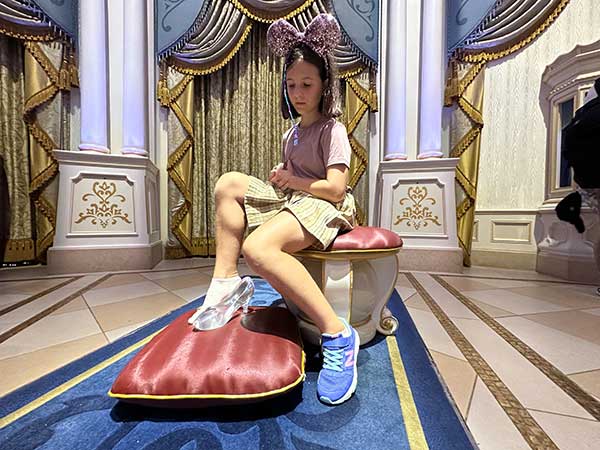 Per riprenderci dalla delusione di Biancaneve c’era solo una possibilità, abbiamo puntato tutto su “Cenerentola“ . Si entra nel castello, si prende un ascensore e si entra negli “appartamenti reali”, dove si può seguire la storia tra pannelli e carillon. Dalle finestre del castello si vede tutto il parco e all’uscita puoi fare una foto con la fata madrina, provare la scarpetta o sederti sul trono.