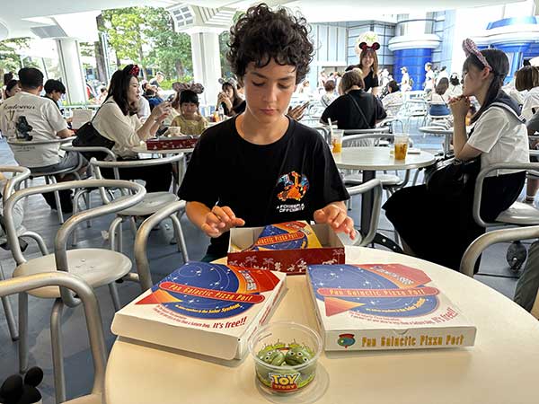 Per pranzo abbiamo scelto “Future Land”, dopo tre settimane in Giappone avevamo voglia di pizza: 30 euro per 4 pizze, un calzone, un dolcetto e due coca cola grandi. ma la pizza era davvero pessima.