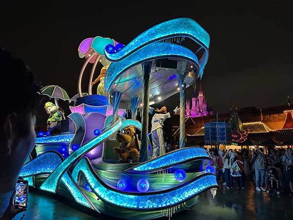 Giornata piena e ricca di emozioni, alle 17 abbiamo aspettato il passaggio della patata  che però un po’ ci ha deluso, non c’era Topolino (per noi inimmaginabile) e quindi abbiamo trascorso le ultime ore tra negozietti, un secondo giro su Splash Mountain e  Space Mountain e alcune giostre che avevano saltato, come il carosello ( un giro sui cavalli si deve sempre fare) e abbiamo finito con il castello della Bella e la Bestia (una tra le attrazioni più belle anche per che più recenti, è stata inaugurata nel 2020); peccato che il racconto sia tutto in giapponese, ma lingua a parte è molto emozionante: ci si siede nelle tazze e si attraversa in varie stanze tutta la storia, dall’incontro di Bella con il principe maledetto, all’assedio al castello fino al lieto fine con un effetto speciale davvero magico.  Prima di andare via l’ultima parata con i carri illuminati, questa volta finalmente aperti da Minnie e Topolino.