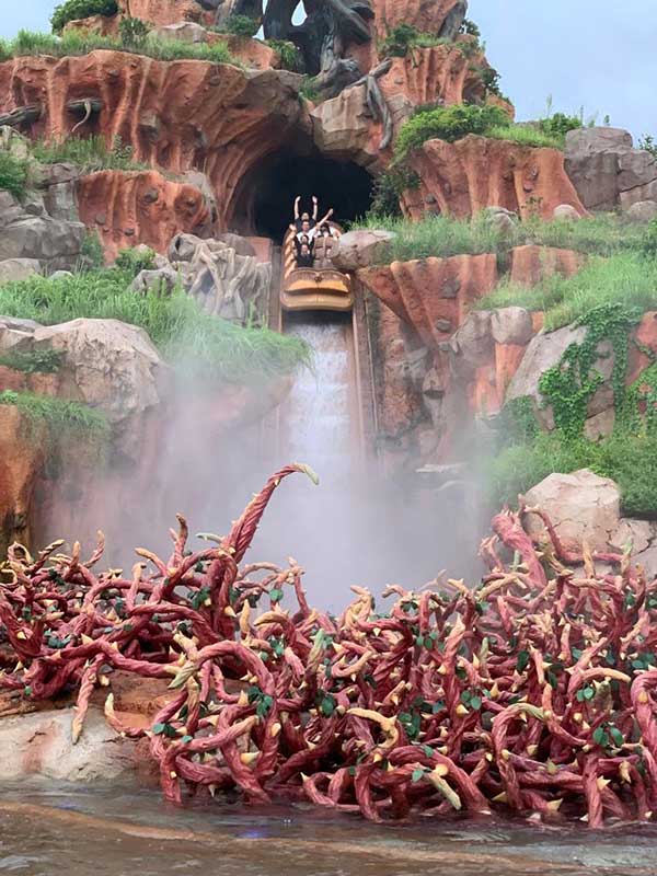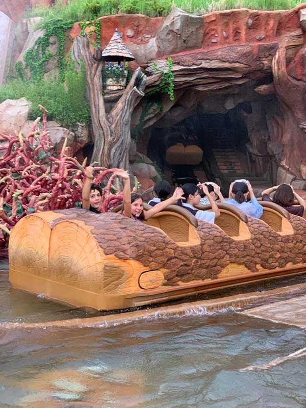 Subito accanto c’è “Splash mountain” (possono entrare i bambini solo sopra i 90 centimetri ) , se avete portato dei K Way è buon momento di usarli, si entra nella tana del coniglio per un giro anche questo bello lungo, oltre i tre minuti, con discesa finale da brivido è molto molto molto bagnata (ai bambini la pioggia di acqua addosso è piaciuta moltissimo) .