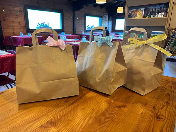Ultimo servizio che abbiamo provato e che consigliamo è prenotare direttamente al rifugio il pranzo al sacco, con insalate di pasta e di riso, panini, succhi e, ovviamente, torte e biscotti fatti in casa. I prodotti so-no buonissimi e le ricette di Alice e Pietro hanno i gusti semplici e la creatività della Valsesia.