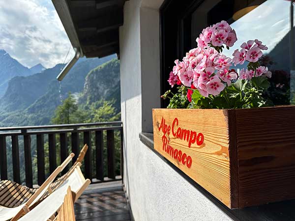 Il rifugio Alpe Campo Rimasco a 1.200 metri s.l.m., nella località Pian della Ratta, su una terrazza naturale che si affaccia sulla vallata ed il sottostante paese di Rimasco ed il lago
