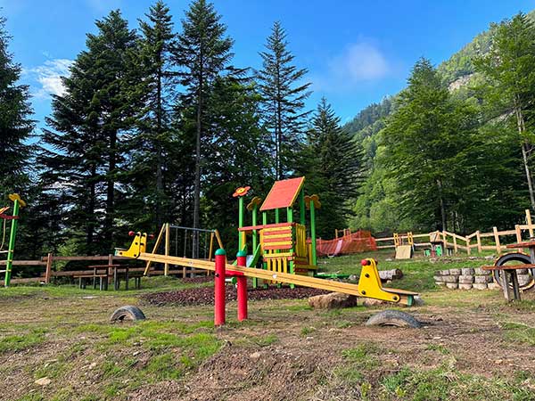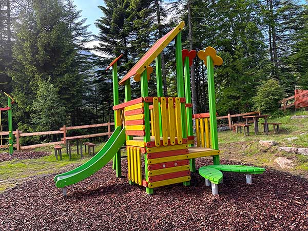 2) c’è un parco giochi in legno.