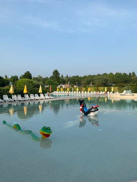 Un piccolo parco acquatico quello del camping, con tre scivoli divertentissimi e due piscine – la più grande a temperatura ambiente, la seconda con profondità digradante invece riscaldata a 25 gradi (anche a maggio è così fattibile fare un bel bagno!) ed è inoltre dotata di area relax con idromassaggio e soffione cervicale e una piccola piscinetta per i bambini più piccoli con pavimento soft.