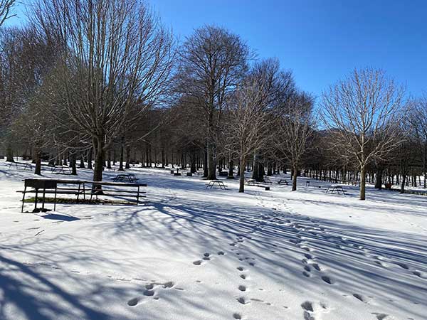 Più nota per i suoi paesaggi autunnali e per la famosa sagra della castagna, in inverno se capita una bella nevicata, anche Roccamonfina regala scenari innevati e boschi bianchi. Noi abbiamo fatto un trekking facile in inverno, ma senza neve, sul sentiero dell’Orto della Regina .
