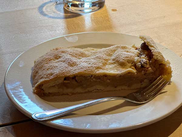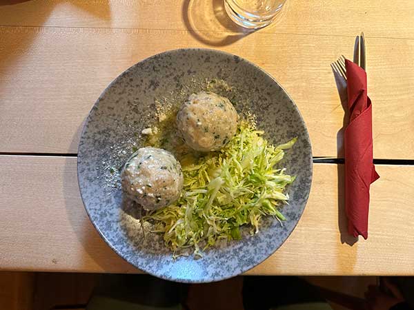Noi appena arrivati abbiamo provato subito  a canederli in brodo e ravioli all’ortica al maso Rielinger-Hof, Circondato da vigneti e frutteti. Siamo arrivati con i bambini della famiglia che tornavano da scuola. Loro si sono seduti a pranzo in cucina, noi nella stube e abbiamo mangiato insieme, come in famiglia. Impossibile non provare i dolci, strudel e Kniakiachl, frittelle con i mirtilli rossi. Accogliente e con piccoli dettagli (come i fiori, i cuscini, le candele), che rendono l’ambiente caldo e familiare.